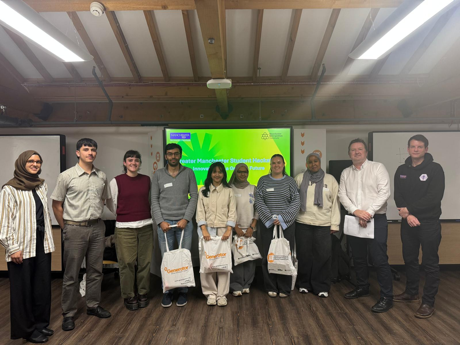 Delivered in partnership with Masood Entrepreneurship Centre, the Greater 91直播 Combined Authority (GMCA), Sustainable Ventures, Generator MCR, and 91直播 Metropolitan University, the event brought together students from a range of disciplines to collaborate, develop new ideas, and pitch their solutions to a panel of industry experts.
