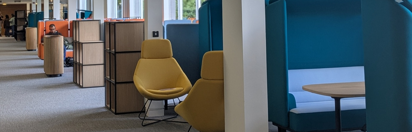 The renovation has introduced a fresh modern environment to reflect evolving student needs. Features include a wider range of soft seating to suit different study styles and clearly defined study areas including a quiet zone, four meeting rooms and two meetings pods for collaborative work.